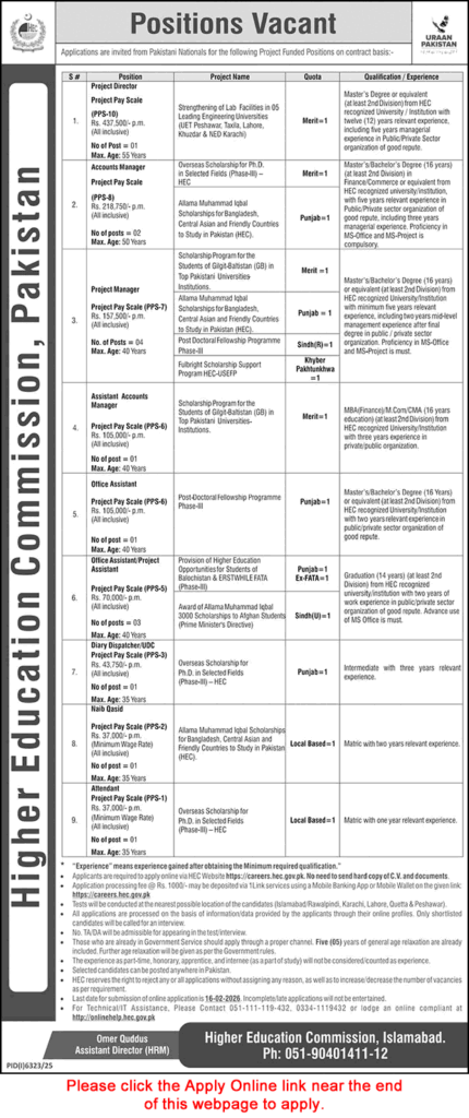 Please visit the link below to Apply Online for Higher Education Commission (HEC) Jobs 2026 February: